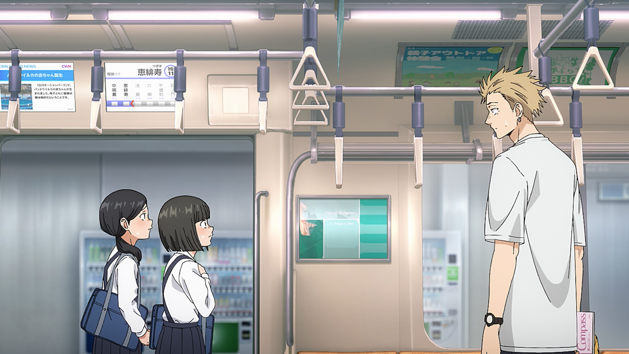 Apart from the concerns for a potential fall-out that follows from that reveal, it was super nice to see the two girls whom Rintaro had given up his table for at the library bumped into him on the train. He didn’t hesitate to give up his seat so they could sit down, but they weren’t going to let him move along without saying a word of thanks this time. And it was so sweet to see, because Rintaro’s just not used to being thanked, but ever since meeting Kaoruko, who thanks him often for even the smallest things, now he’s finding himself encountering more and more people who aren’t simply judging him by his appearance, but by his generous actions. Thanks to those little efforts, more people are seeing ‘wow, he’s a really nice guy!’, and that’s a wonderful thing. It really does a lot to boost his self-esteem, and it also goes a long way of restoring his faith in others to respond positively towards him rather than negatively.