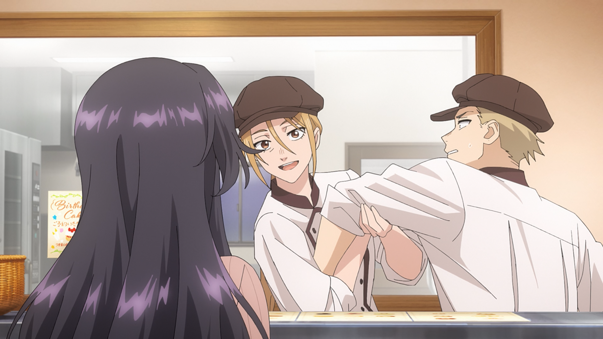 And finally Kaoruko! She showed up at the shop to reward herself for her studies, and also dressed nicely in case she saw Rintaro, heehee~, and she could see that Rintaro was feeling quite dispirited when she had wanted to give him a high-fives for passing his tests. So she really tried to suggest ways to help cheer him up, which worked out because the way she was explaining gave him a much needed laugh. And it was at that moment Rintaro fully understood what Subaru meant of how Kaoruko has this ability to clear the clouds in their hearts.