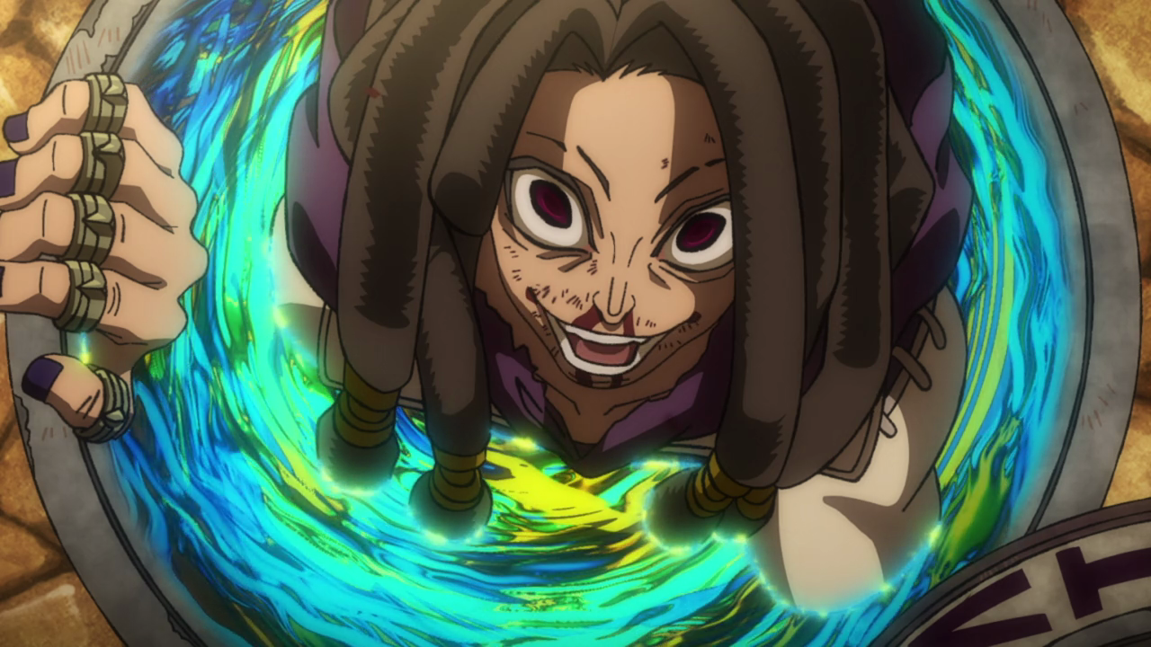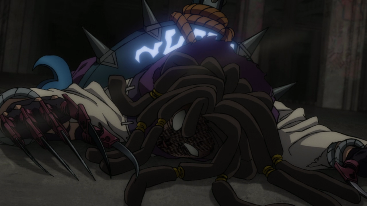 THIS SERIES NEEDS TO STOP. I cannot handle it not giving us a definite answer of when the episode ends. One or two cliffhangers I can handle, but when it’s THREE IN A ROW. THIS NEEDS TO STOP. Anyways, aside from the dramatics, I actually did enjoy this episode. As expected, Jabber’s plan of attacking Rudo through pure instinct without triggering Gris’ talisman ends up working and nearly overwhelms Rudo. While Rudo can defend himself pretty well against threats, he doesn’t have a lot of combat experience. Especially against those who are conditioned fighters like Jabber. We’ve only seen him really hold his own against people without special abilities and mindless trash monsters. So it makes sense that he wouldn’t be able to handle Jabber on his own.