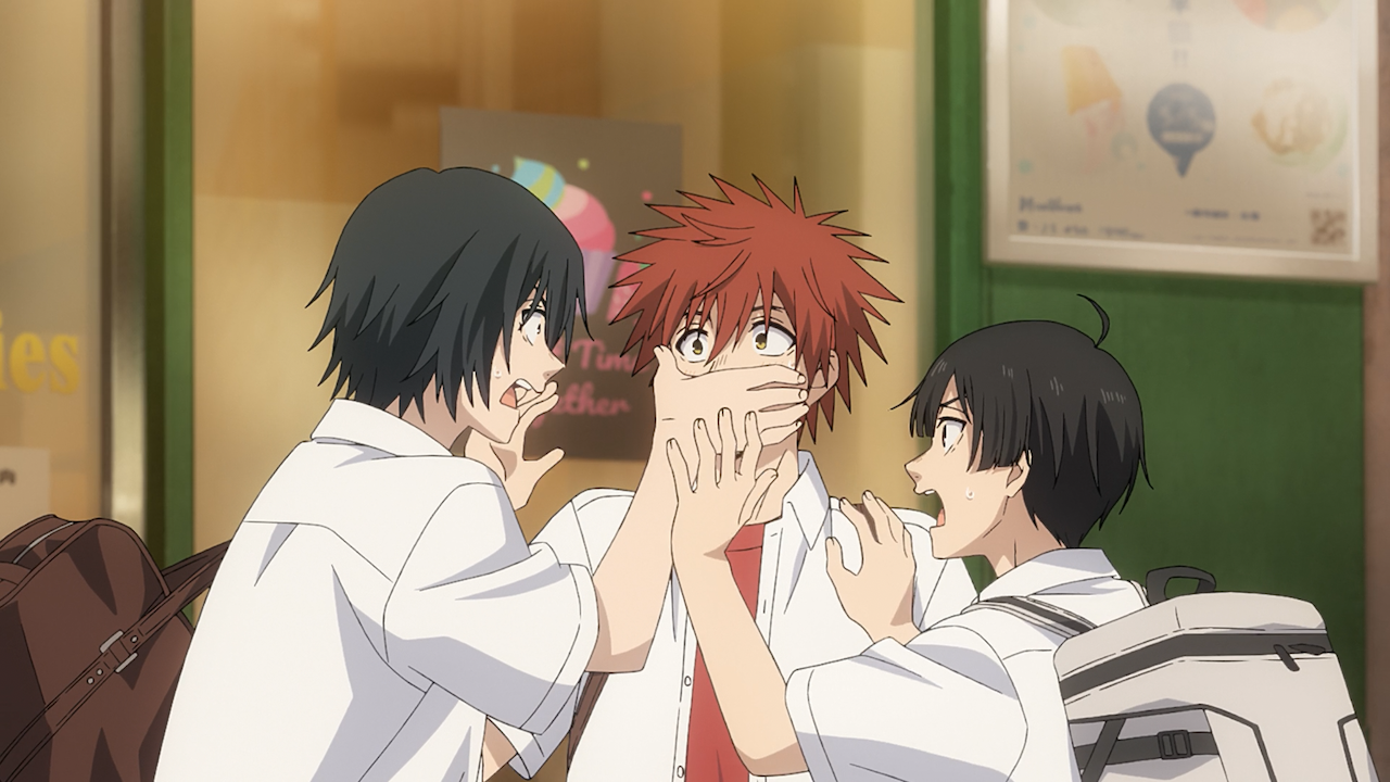As one would expect, considering both Rintaro and Kaoruko has been anything but subtle about their feelings to each other, naturally Shohei, Saku and Ayato have all been quite aware of it. The only difference was that Saku and Ayato had the tact not to call him out on it, meanwhile Shohei just bluntly asks him if he’s already dating Kaoruko. Gosh, that left me wheezing from laughing so hard! Poor Rintaro, he was SOOOOOOO EMBARRASSED! Now he’s extra self-conscious of the idea Kaoruko might have noticed! But gosh, he kind of set himself up for that one because he was completely in daze of seeing Kaoruko with her classmates across the street. He was lucky that none of his classmates seemingly noticed, unless they are showing enough tact not to ask about it too hahahaha. Heck, it appears he didn’t even notice Shohei was about to call out to the girls, but thankfully Saku moved fast enough to clamp his mouth shut and remind him they are supposed to be discreet! It was also really funny to see Saku and Ayato to keep Shohei in check and reassure Rintaro they won’t tell a soul about it! That said, it was adorable how Saku and Ayato gave each other a knowing when they noticed how Rintaro was gazing at Kaoruko during the study session!