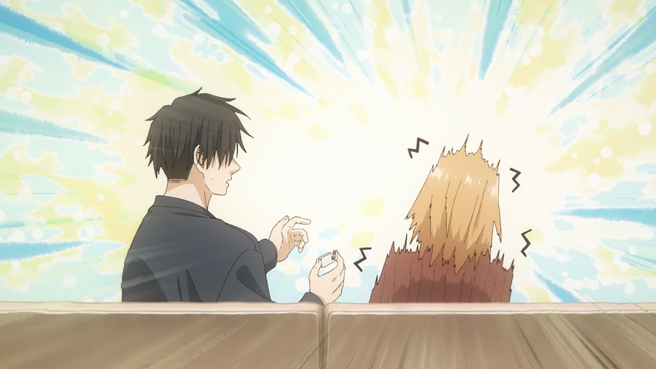Gosh dang it. I’ve said it before, and I’ll say it again: Rarely, do we get to see parents shine in these type of series– and the little time they do, often time they are already freaking dead. So yeah that says a lot to why I absolutely love how Kyoko has a well deserved place in this story. She is the prime example of the kind of parent who will go above and beyond to support their kid, especially when their child finally finds the courage to pursue something that interest them. She knew Rintaro would feel self-conscious and concerned about causing problems for their shop if he dyed his hair and pierced his ears. At the time, he was already being bullied by his peers for simply being himself. So she made it her mission to be the first to take that step and lead the way, both dyeing her hair blond and piercing her ears too. What a champion she is!