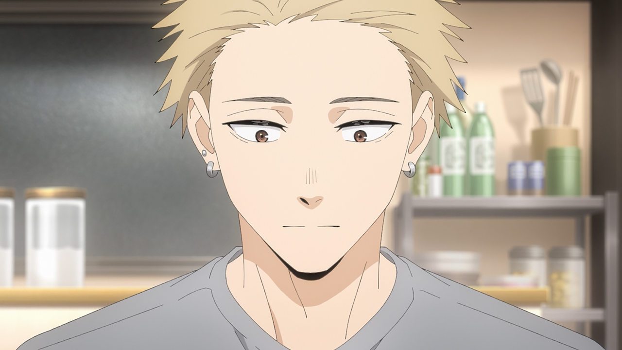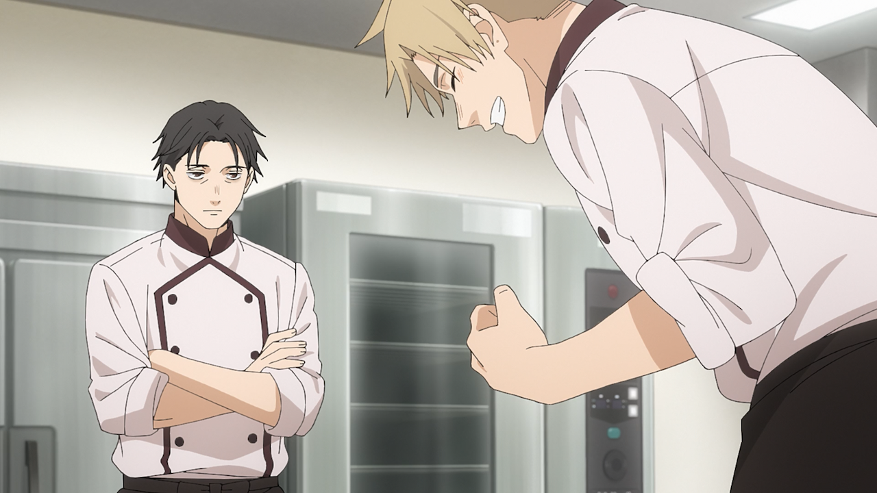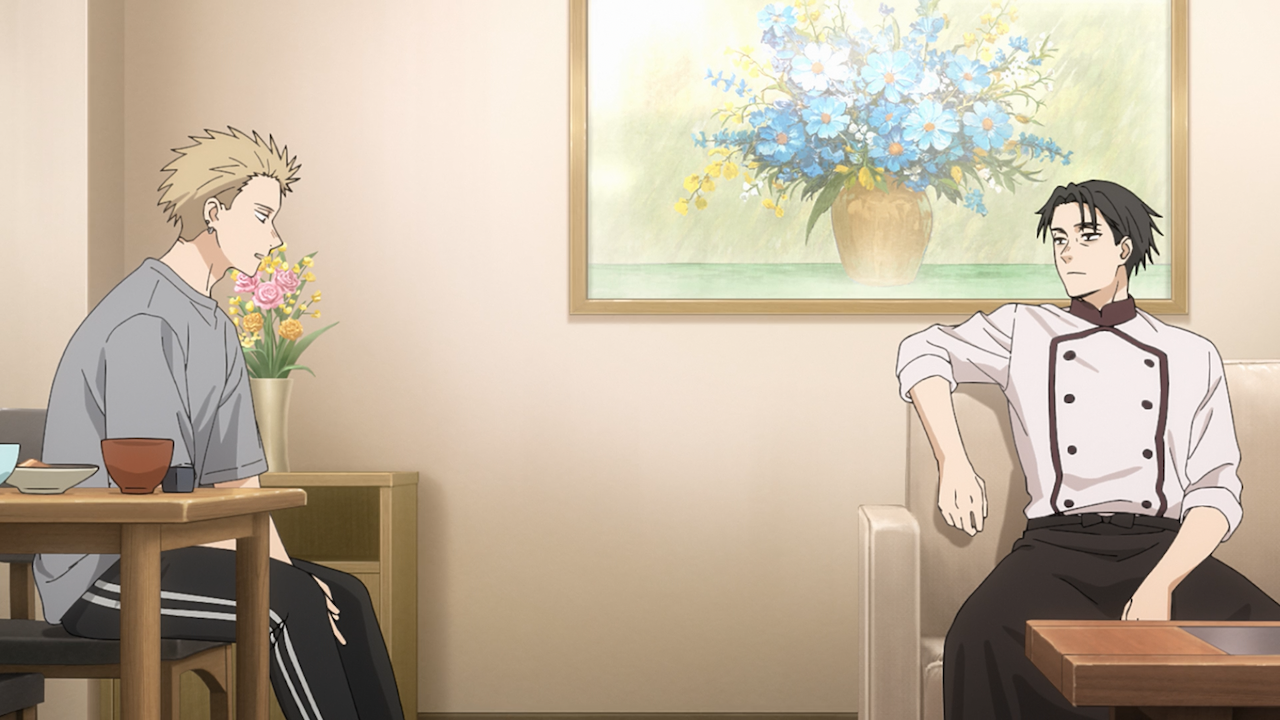 It turns out the reason why we never saw him until now was that he was always either cooped up in the kitchen or sleeping when he could. He’s the one who’s leading the charge of producing all the cakes for the shop as a professional patissier, including the assorted cakes that they gave to his friends when they were over. The man comes off as a bit gruff, but you can see he cares for him as much as Kyoko does, and is happy to see him smiling more.