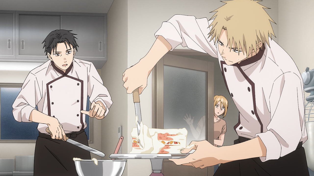 Kaoruko described the cake as gentle, and filled her with warm and fuzzy feelings, and it’s such a nice thing for Rintaro to hear after being told for so long how he didn’t fit the image of being a child from a family that runs a pastry shop. Finally he receives validation that he does in-fact fit in with his family, and was reminded by his parents that this bakery is his home too! So naturally he doesn’t need permission to help out whenever he feels like it!