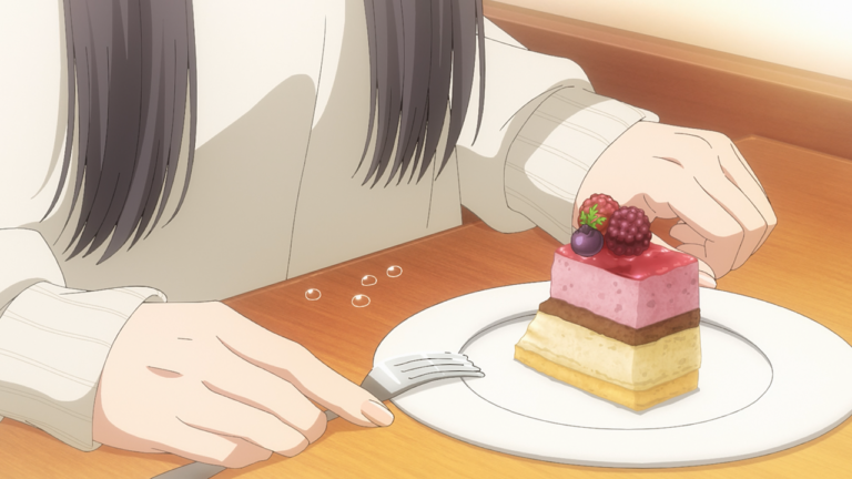 But what surprised Rintaro the most, was that the first meeting to his memory was in fact not their first meeting, and it was him who had saved her. The truth is, the first time they’ve met was actually last winter, and it was during a time when Kaoruko was going through a real rough patch. She was not the girl with the light in her eyes that we know of her today. She was undoubtedly suffering, to the point that she even explained until she encountered his family’s shop, she hadn’t been able to enjoy cakes, something that she loves. But for whatever reason, that particular day, she was compelled to enter their shop. It was there she not only got to eat cakes that made her experience the warmth and taste again, (something his dad would be absolutely delighted to hear), and it affected her so much that it made her cry.