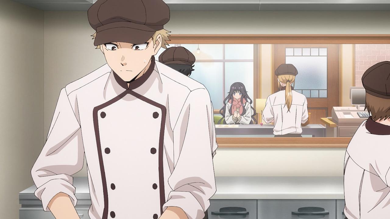Though Rintaro doesn’t remember this, he had actually checked up on her to make sure she was okay– because we all know that’s who Rintaro is the kind who would not turn a blind eye to someone who’s clearly in pain. Whatever he had said to her in that moment was balm to her soul. It motivated her to take the time to make herself look cuter, from taking the time to put on makeup, curling her hair and wearing cute new clothes, all of this was thanks to him making her heart feel lighter. She wanted to look her best the next time they met, and hoped to talk to each other again. But unfortunately… even after persistently visiting the shop once or twice a month for a year, for her they kept missing each other. That was until one day, when she was having yet another what seemed to be a rough day, she didn’t care about how she looked for an exchange and decided to eat a ton of cakes in the shop. And that, was when Rintaro had thought they’ve met for the first time.