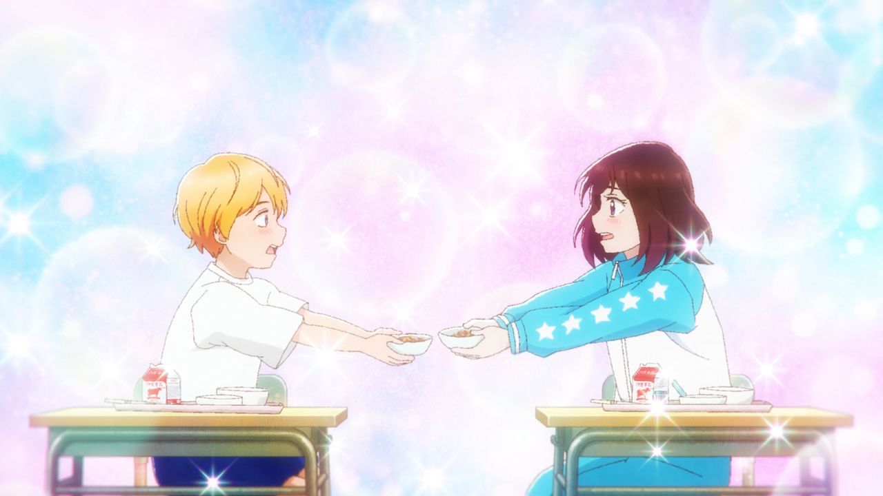 Needless to say, we’ll have to see how it will go because in the beginning of the episode, Sae mused how she had been lucky none of her friends ever had a crush on Koki. But now that they are in highschool, it looks like a new friend (I’m assuming the one she had had caught falling down the stairs) is going to develop feelings for Koki. You can already see the girl is locking in on him, and that’ll definitely make things potentially messy. So I’ll be giving this one up to three episodes to see if I’ll like to cover it this season!