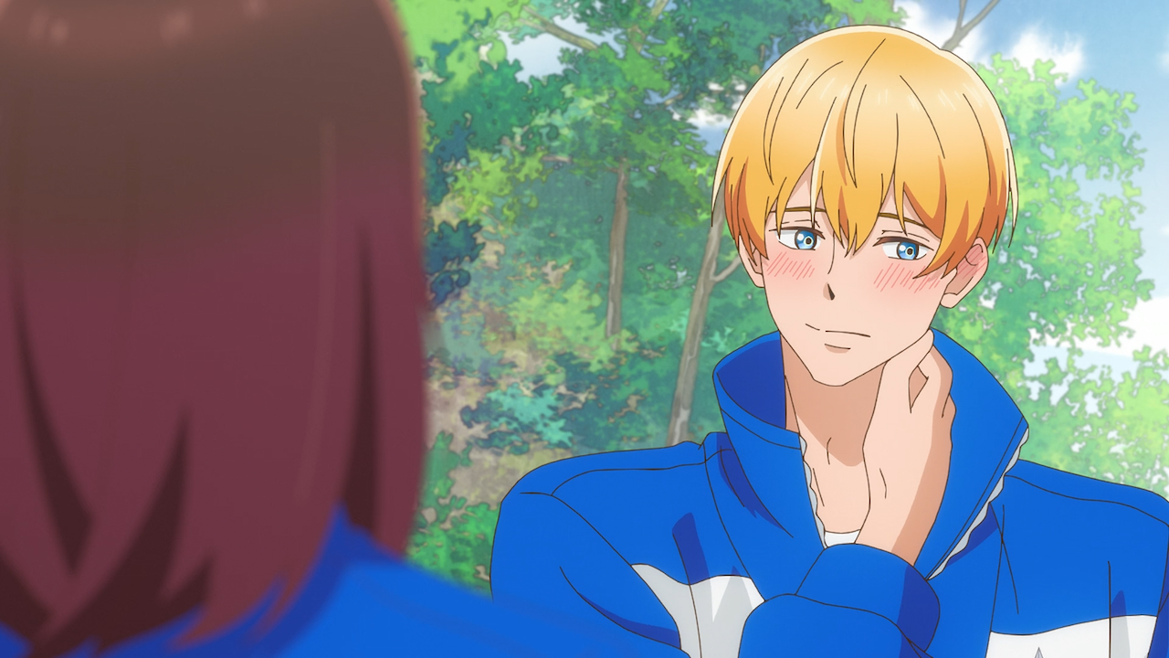 We also saw how he’s protect of her, from catching her skirt had gotten torn after she had saved Hisui from the fall and giving her his coat to cover it, and having zero tolerate towards any slander against her. The best example of that is against their classmate Yushin, who is incredibly obnoxious and already on multiple accounts in this episode alone has said really rude things about Sae. Naturally, Koki wasn’t having any of it. The first instance was saving her from a nickname that she hated by suggesting the one he already knew she was comfortable with. The second instance was when he sent Yushin flying down the hill when they were picking up trash. Whatever the guy had said, it made Koki snap. (Admittedly that not the smartest response since Yushin could’ve gotten seriously hurt, but alas the dude didn’t and didn’t seem to care about it afterwards). Heck he was so upset about it, Koki even fell back into their old habits of calling her by her first name! (Which was absolutely adorable because he was a blushing mess yet again when he realized what he had done!)