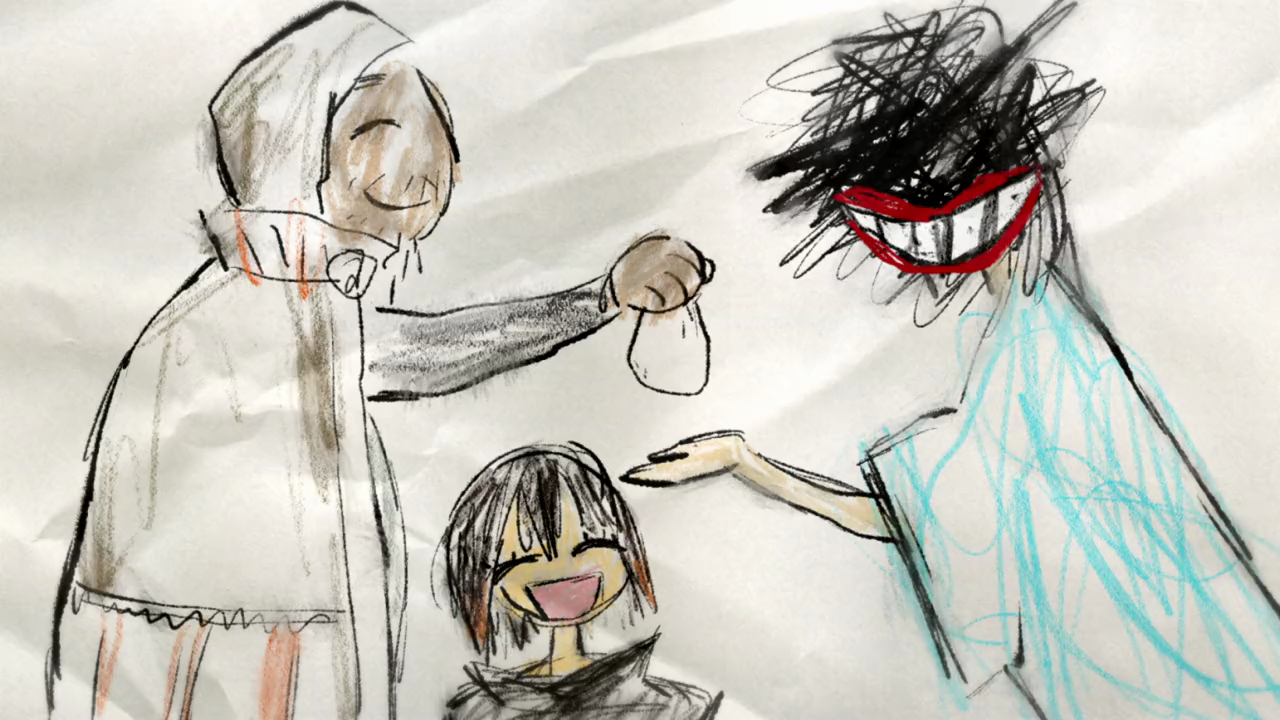 I think deep down, Amo recognized that what her mom did was terrible despite her naive disposition. Considering in her child vision, her mom’s face was scribbled out. It almost made her mom look like a monster in that depiction, but honestly that wouldn’t have been that far off from the truth. And it honestly was incredibly saddening that even she realized that her mom sold her, but pushed that thought aside and tried to tell herself that it was for “her” sake of finding love to most likely protect what little was left of her sanity.