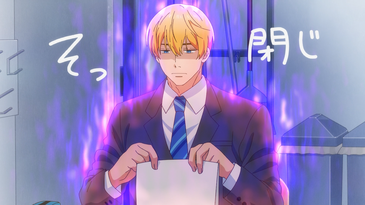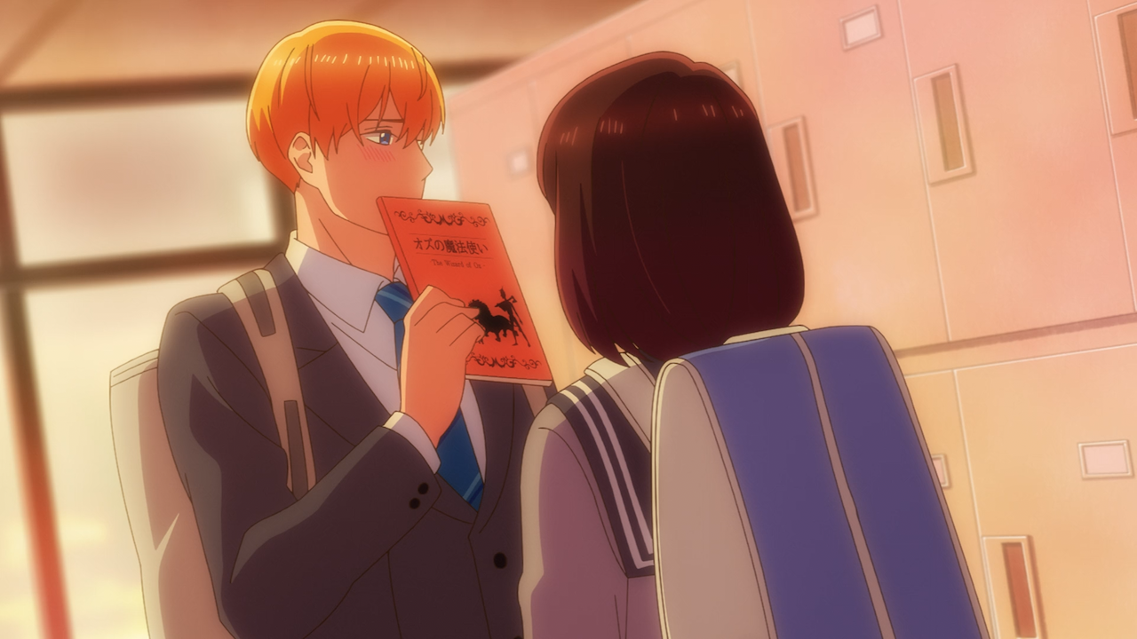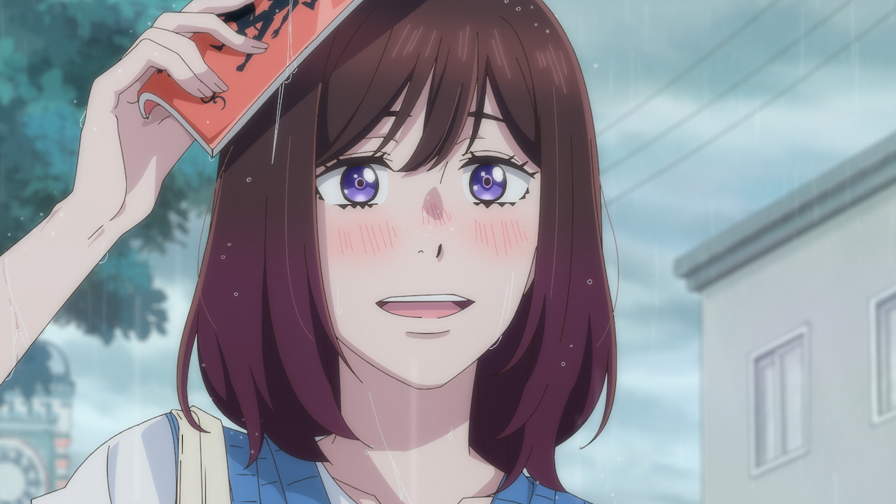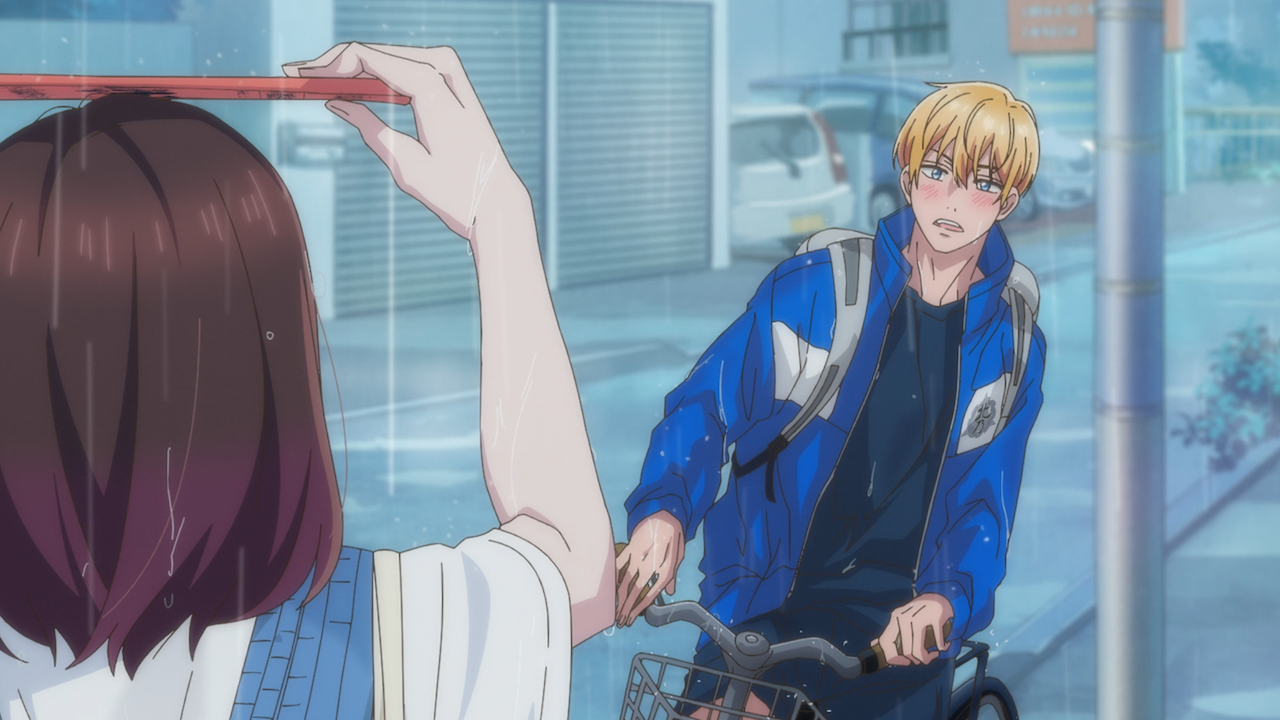 Though needless to say, the whole situation with Sae choosing to just sit there waiting in the rain just struck me as super dumb. Like, okay sure, the book can keep her somewhat dry, but girl couldn’t you just walk across the street and stand under something to stay dry at least? Koki’s running late, and she just kept sitting there! WHY WOULD YOU DO THAT?! But whatever, maybe it was worth being objectively dumb about that since it created a whole corny scene with Koki throwing his coat over her to keep her dry and had a moment to be cool about it. Seriously, this could’ve been a cute scene, but it was watered down by the sheer silliness of it.