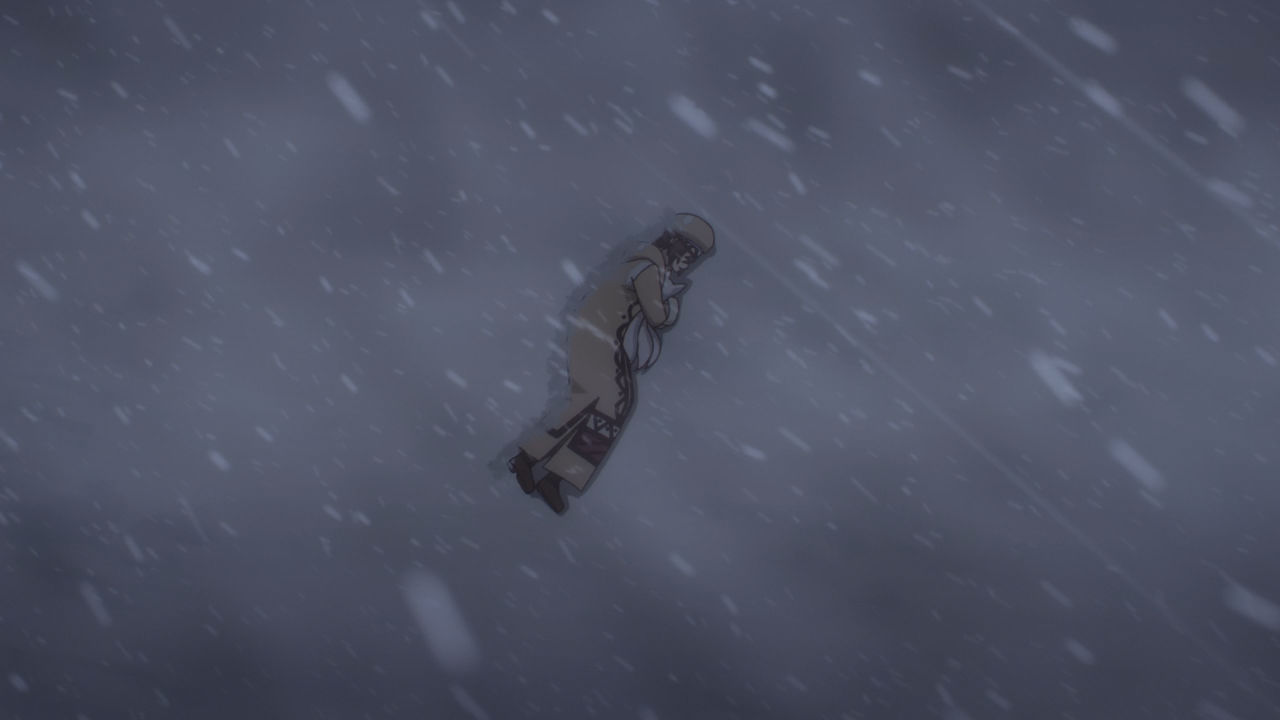 Aoi needed to rescue Ginji and get the two of them out of danger. Staying at their old base camp and wait for Oryo to return was not an option when there was no telling whether or not the Ice Wolves would come back for them. So she had no choice but to push through the hazardous white-out conditions. Predictably, she didn’t last long and passed out. But THIS WAS THE ONLY MOMENT where we did see a strong implication that Odanna may have manged to come to their rescue. Interestingly however, instead of green ogre fire, it was blue this time. This is a particularly important detail because we saw in the last episode that Ginji’s fire is actually red. (At least in this season anyways, I can’t remember off the top of my head if we saw it in the last one!) Naturally she was unconscious when this happened, because obviously we can’t have Odanna’s true form revealed just yet!