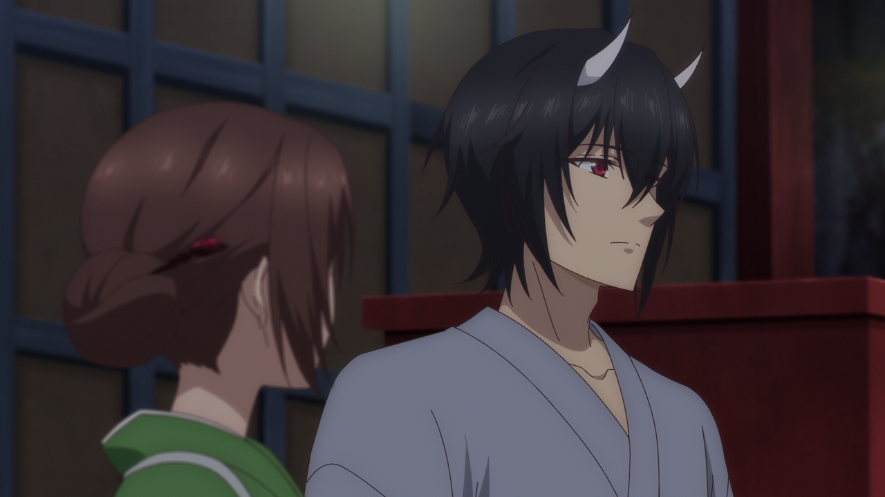 Following up from the Orio-ya Arc, Aoi’s feelings towards Odanna have been rapidly blossoming– to which to perhaps no coincidence, the hair pin Odanna has gifted her back in the first season is finally blooming in all its glory. It has yet to be confirmed whether or not it’s really tied to her feelings or really served as a “time limit” to clearing her debt. I think it’s the former though. (Side Note: For time reference, we know it’s been just short of a year since Odanna has picked her up. It’s presently late December, with 5 days till New Years, and Odanna picked her up sometime in the spring, so March or April you could say.) I think what I really like about this though, is that Aoi still isn’t sure if she’s in love with Odanna, and that’s fair all things considered. Not to mention, it’s complicated right now because right now she’s sorely missing him, and as result it’s intensifying her longing. And on top of him being a total mystery she wants to unravel, and she wants to get to know him first so she can sort out how she feels about him.