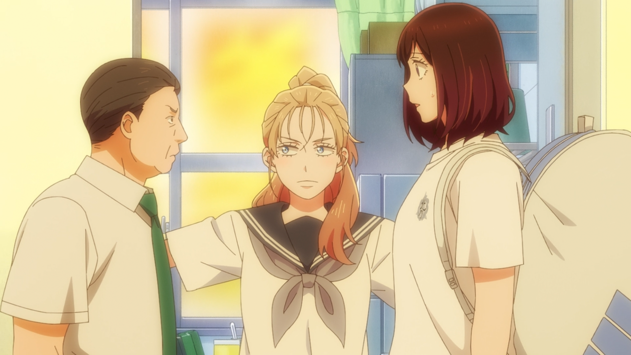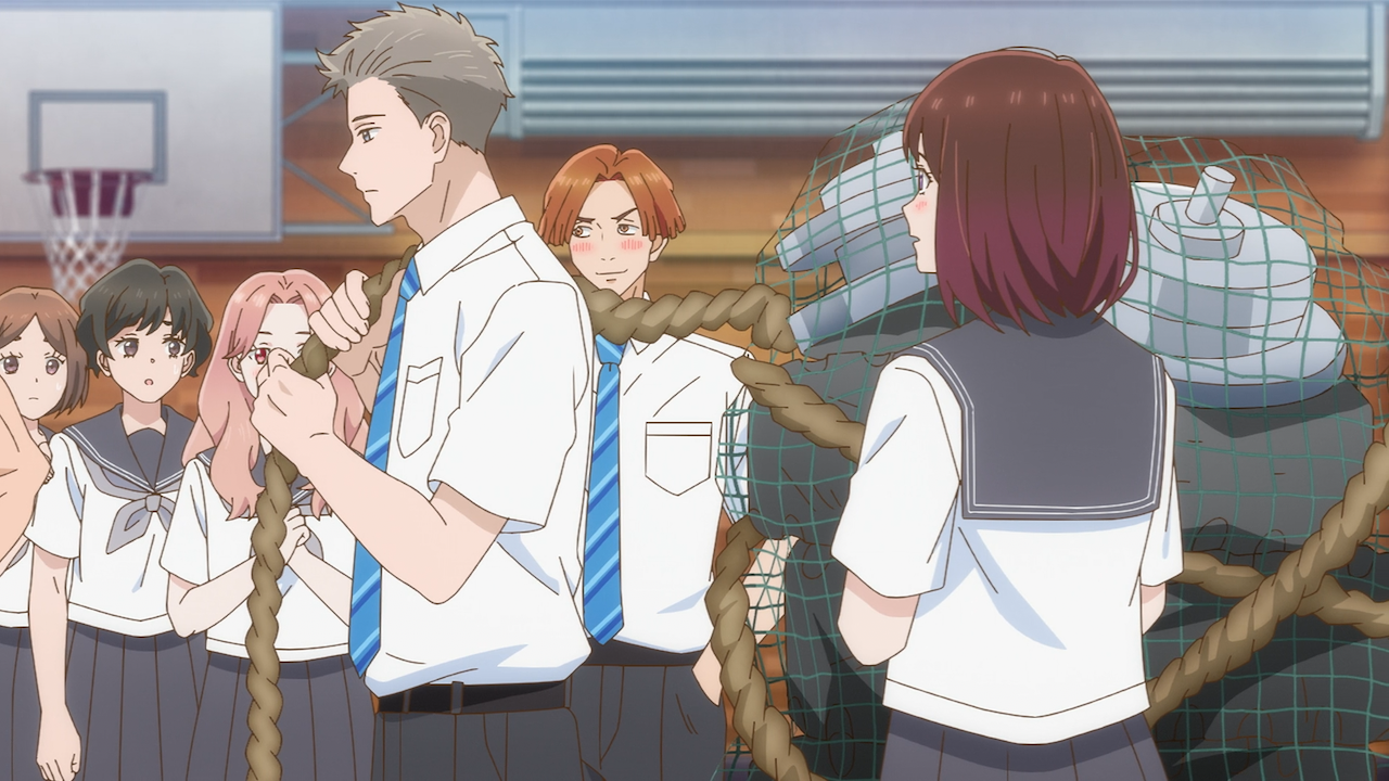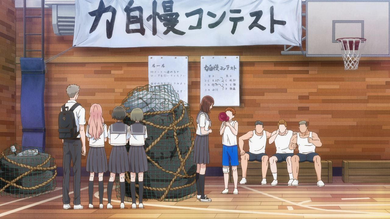 Speaking of Youta, oh man it’s too late bro. I feel for the guy, especially when he really been looking out for Sae. He noticed Sae was feeling self-conscious about her strength when she broke the record for the weight pulling activity for the Ultimate Strength Contest her classmates dragged her to. She really didn’t want to do it, but she did it anyways. Although the strength club members were raving her with praises, unfortunately she doesn’t think being called “Sumo Champion” is flattering. She’s already self-conscious enough about her height and weight. That’s when Youta stepped in, and by doing so and putting absolutely no effort into even trying to pull the thing– he literally just stood there the entire ten seconds, and created a new record that’d shift the attention to him. This was his way of looking out to her, and the first thing he says to Sae is asking if her hands are okay. These are all little things that we know Sae does appreciate.