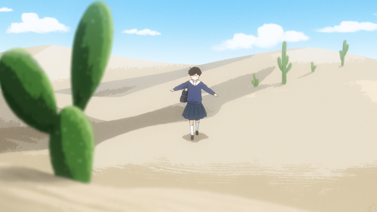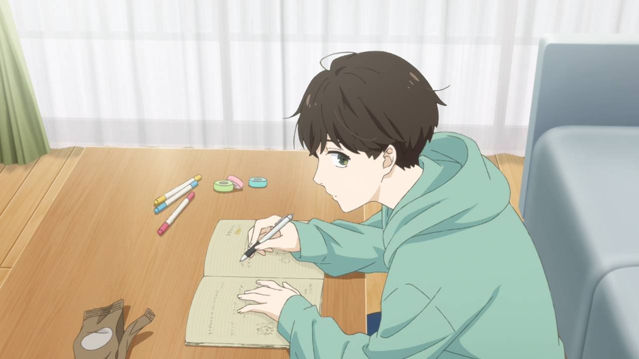 But what Asa doesn’t quite understand yet is that being creative is a lot harder than people realize. That’s why Makio was in such a slump for the past few months. The easy part is coming up with a basic premise, but expanding on that and fleshing it out is the tough part. For Asa, she claims she doesn’t have anything she wants to say, but in truth she actually does: “It’s not fair, screw this.” and “It was like everyone was speaking to me in a foreign language.” But the problem is that she’s not sure how to describe any of it beyond that and the the analogy of the desert she feels lost in. (Note: We do briefly see her lyrics while she’s on the train!)