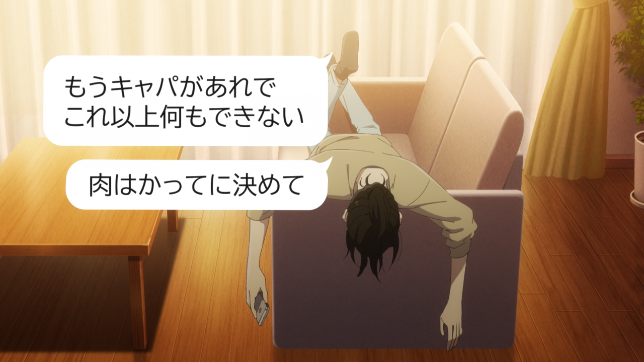 Makio’s struggle trying to overcome this slump of writing her manuscript was enormously taxing on her. In-fact she was so out of it and so drained that, Shingo had been helping out with doing things like buying groceries and prepping some meals for her so she doesn’t have to cook. Hilariously, and to Asa’s disbelief, Makio went straight to Shingo and immediately became clingy, which was absolutely adorable! For a bit she was latched to him like a koala cub while he was cooking. He did manage to help her out beyond that too, as he was the one who had suggested to Makio that maybe she could reach out to someone in her field to talk about her slump with.