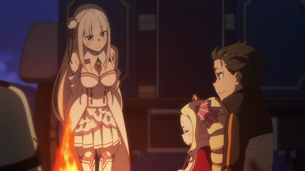 I’m honestly kind of torn about the situation. On one hand, I wish there was more build up to this artificial spirit in like the first season and not having it just be something that comes out of nowhere. Especially since we didn’t really know Anastasia all that well to begin with as we only got to be around her a little bit in the first season. So when characters noticed something off with her, I felt like I couldn’t really connect with that information all that well. It was more of a “oh, okay… well that happened” rather than a “pieced it together” kind of moment. Though I did like the foreshadowing in this episode where “Anastasia” was petting the muffler in the beginning scenes and Subaru looking a bit irked by her reaction to Julius being forgotten.