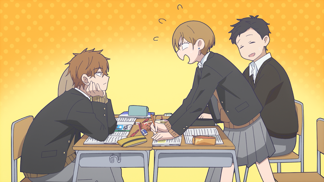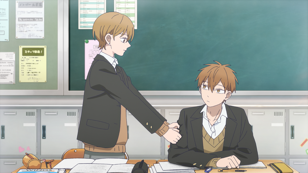 One right there is one more observation I almost forgot to mention: It appears Youta may be self-conscious around Miki. I didn’t notice it the first time when they were at the vending machine last week, but when we got the flashback, I realized Youta has dropped things whenever Miki leans close to him. And not to mention, there was a little blush today when they were picking up the pens. And considering he did bring up Miki as a link of common interest with Koyuki when they were heading to the community center, so maybe he might actually have feelings for her? Or maybe it’s something else altogether, but so far this is a pattern that might be worth keeping an eye on, and perhaps this is what Minato was alluding to when he made that remark about Youta after-all.